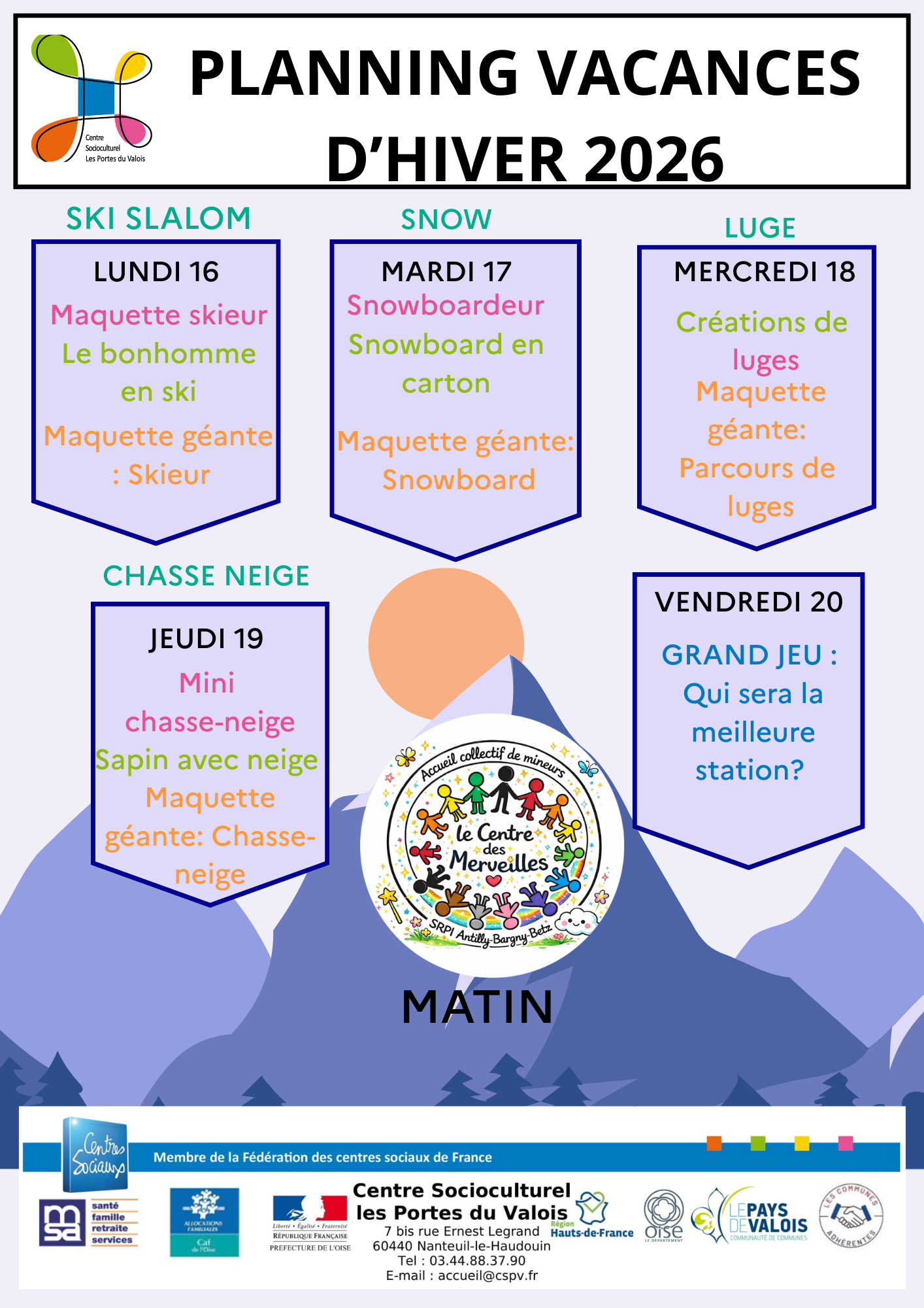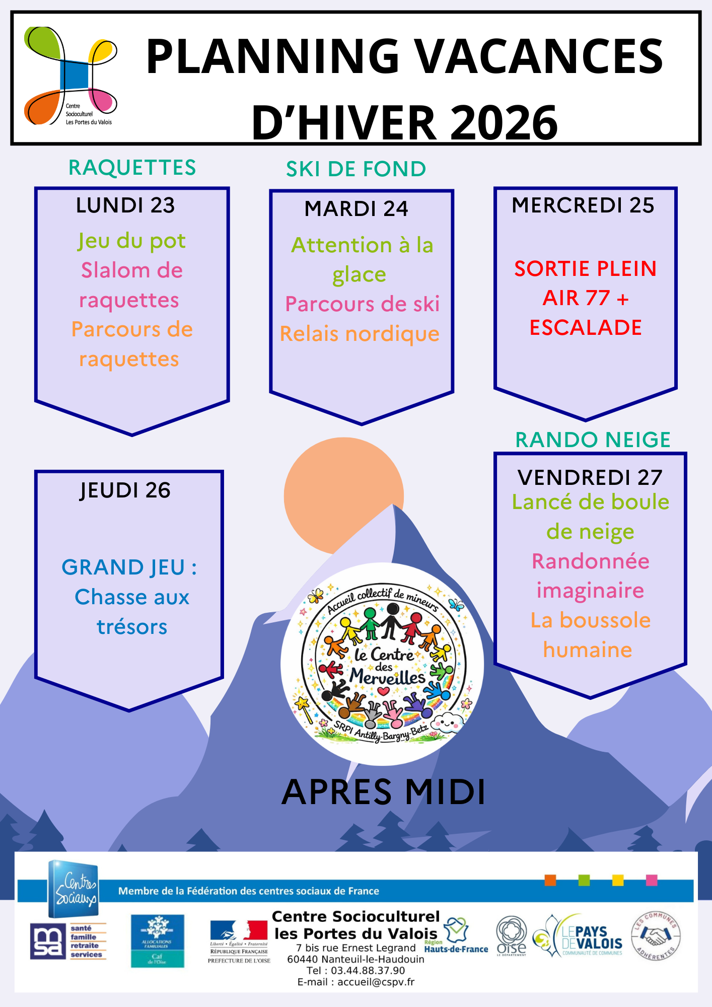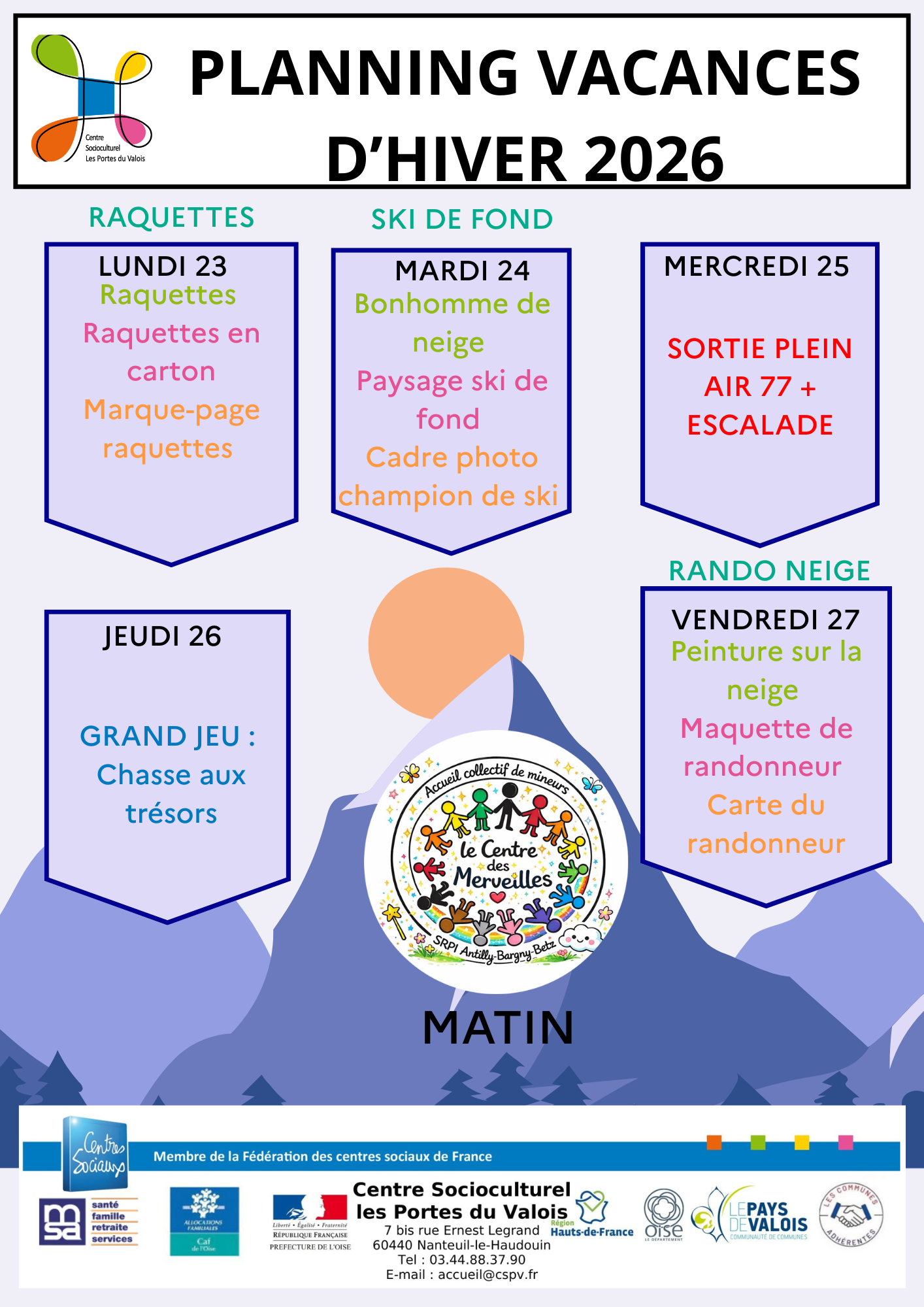 Pour tous renseignements complémentaires, n’hésitez pas à venir au CSPV ou à téléphoner au 03 44 88 37 90 et prendre contact avec Matthieu, coordinateur Enfance, ou les directrices/directeurs des accueils de loisirs Florence, Romain, Elodie et Sarah.