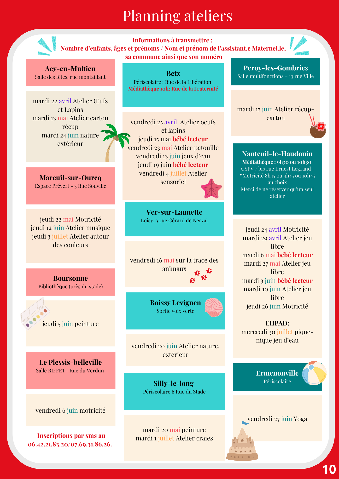 Les dates des ateliers sont communiquées dans le journal AM Stramg’RAM. Il s’agit d’un trimestriel qui est envoyé aux assistants maternels du canton de Nanteuil-le-Haudouin. Il est en co-construction avec le comité de rédaction qui est composé d'un groupe d'assistantes maternelles. On y trouve l’actualité du RPE, les ateliers, des suggestions de lecture pour les petits, des idées d'activités d'éveils, des articles législatifs et pédagogiques... N’hésitez pas à nous contacter pour le recevoir. Des exemplaires sont également disponible au CSPV.